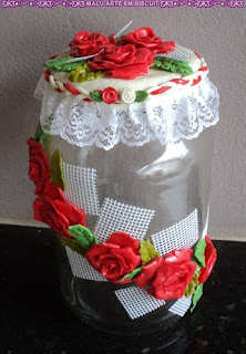 POTE DECORADO COM ROSAS VERMELHAS